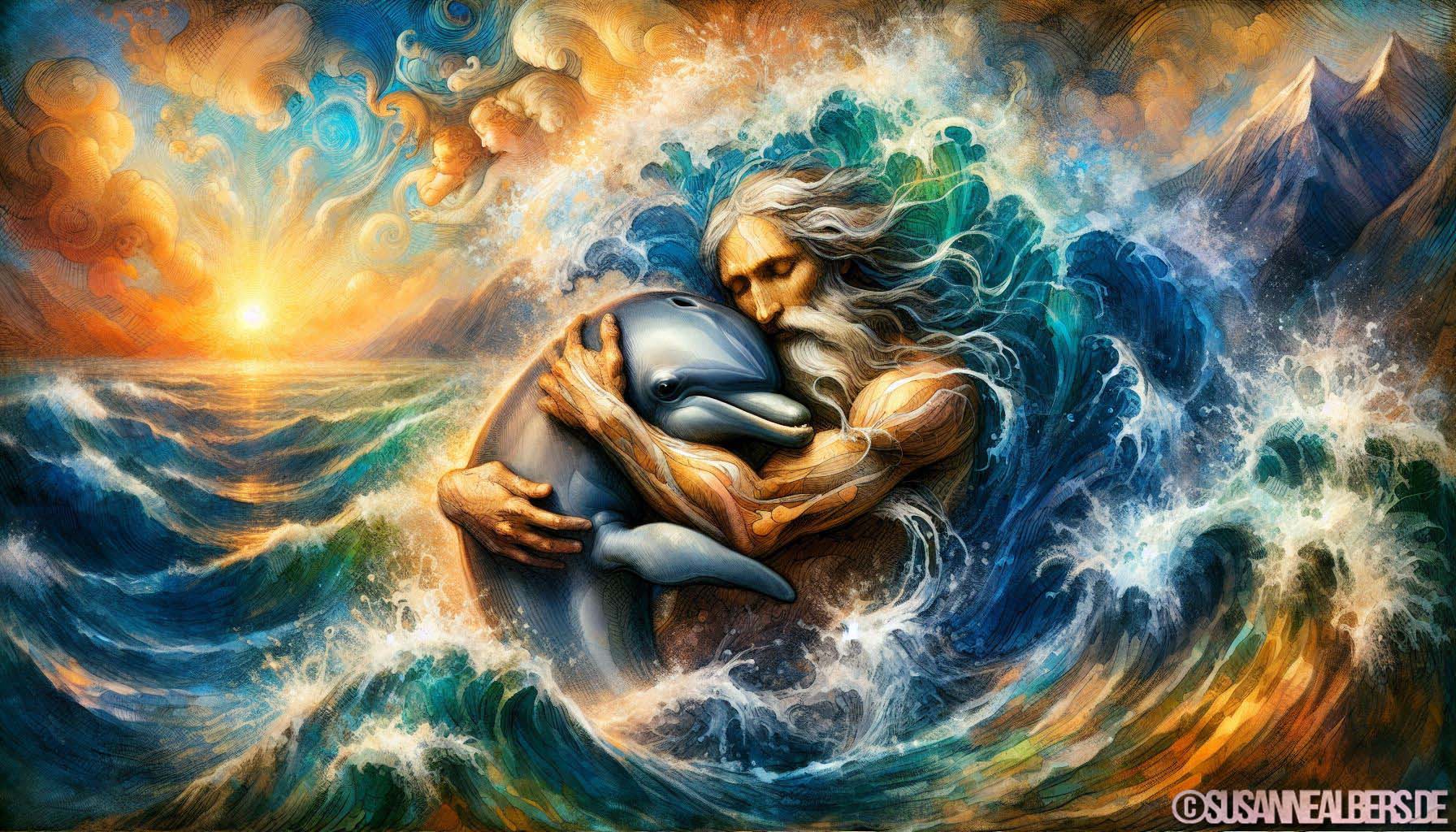 Galerie für KI-Bilder - Kunst und Inspiration >> albums >> -mystisches-gefuehl-delphin-zu-umarmen2