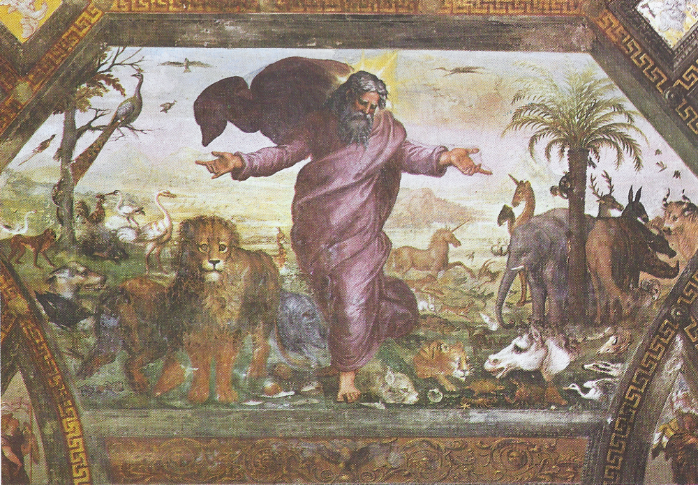 Genesis 1,20 Und Gott sprach: Es wimmle das Wasser von lebendigem Getier, und Vögel sollen fliegen auf Erden unter der Feste des Himmels. 1,25 Und Gott machte die Tiere des Feldes, ein jedes nach seiner Art, und das Vieh nach seiner Art und alles Gewürm des Erdbodens nach seiner Art. Und Gott sah, daß es gut war.