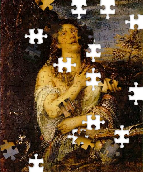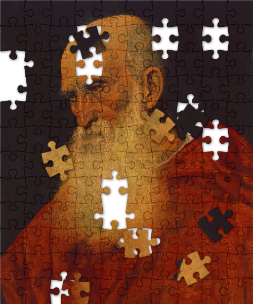 Albrecht Dürer - Portraits im Puzzle - Lucas Cranach - Portraits im Puzzle - Raffael Sanzio - Portraits im Puzzle - Tiziano Vecellio - Portraits im Puzzle Tiziano Vecellio - Portraits im Puzzle* um 1477 oder um 1490, wahrscheinlicher jedoch zwischen 1488 und 1490 in Pieve di Cadore bei Belluno, damals Republik Venedig; † 27. August 1576 in Venedig) gilt als der führende Vertreter der venezianischen Malerei des 16. Jahrhunderts und einer der Hauptmeister der italienischen Hochrenaissance. Zu Lebzeiten wurde er oft nach seinem Geburtsort Da Cadore genannt. 1508-10 Tiziano Portrait of a Man