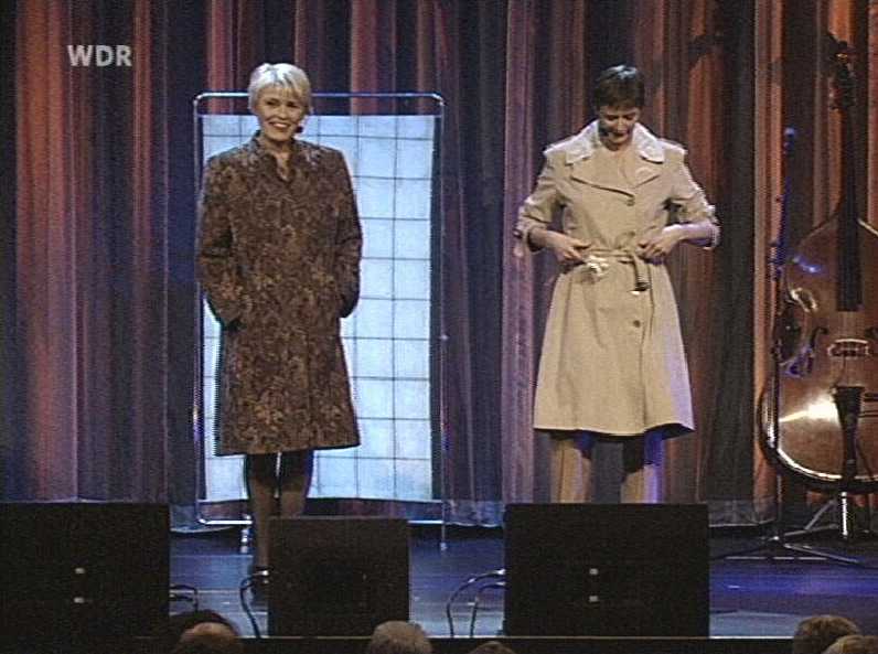 Missfits - "Letzte Runde" Samstag, 24. September 2005, 20:15 - 21:45 Aufhören soll man bekanntlich immer dann, wenn es am schönsten ist. Getreu diesem Motto ziehen die Missfits einen Schlussstrich und blicken ein letztes Mal auf ihre 20jährige Mission im Dienste des messerscharfen Humors zurück. Reihenweise haben Gerburg Jahnke und Stephanie Überall Tabus gebrochen, filigran das Verhältnis zwischen Frau und Mann seziert, den vermeintlichen Herren der Schöpfung kräftig Saures gegeben, mit den Mitteln der Satire Emanzipationsarbeit geleistet und dabei immer auch viel Selbstironie walten lassen. In der "Letzten Runde" bekommt das Publikum all das, was die Missfits unverwechselbar und legendär gemacht hat, noch einmal in konzentrierter Form. Ein Wiedersehen gibt es beispielsweise mit Matta und Lisbett, den beiden älteren Damen am Krückstock, deren sexuelle Energie keinesfalls aufgebracht ist und die mit gutem Grund eine gewisse Vorliebe für Quickies haben: "Dat Leben ist doch kurz!" rgebnis.asp&Pos=1895182&startdatum=29.08.2005&endedatum=02.10.2005&schlagwort=Missfits HÖREN: Seite 1 - Seite 2 - Seite 3 - Seite 4 - Seite 5 - Seite 6 - Seite 7 - Seite 8 - X im Titel bedeutet : keine Musik, sondern Text - SEHEN: Seite 9 - Seite 10 - Seite 11 - Seite 12 - Seite 13 - Seite 14 - Galerie - Missfits - Paare finden - Missfits Sound - Paare finden Bilder von: Ulrich von Born - Harald Hoffmann - swr1 - wdr - www.travel.de - http://www.schweipenz.de/missfits/missfitsfan/galleries/ - Was kann an Hintergründen so spannend sein ??? Rätselverzeichnis - Wie alles begann ... - Zufallsrätsel - erstes Rätsel