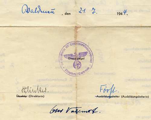 Für meinen Opa, Otto Vollmert, der Parteimitglied war, weil ihm die Dorfgaststätte gehörte, muß es ein innerer Reichsparteitag gewesen sein, daß eine seiner Töchter dort zu Schule ging, denn voll Stolz hat er dieses Zeugnis unterschrieben. Er starb 1954 an Magenkrebs, den er sich aufgrund seines Alkoholkonsum selbst eingebrockt hatte. Einerseits hat er seine Kinder bis zum Kotzen verprügelt, andererseits war er aufgrund dieser Gaststätte ein angesehener Bürger in St. Margarethen.