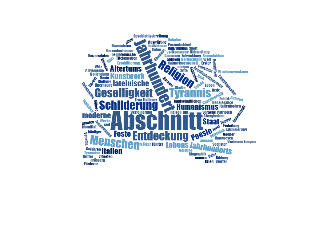 | Die Religion und der Geist der Renaissance | Notwendige Subjektivität - Weltlichkeit des Geistes - Toleranz gegen den Islam - Berechtigung aller Religionen - Einwirkungen des Altertums - Sogenannte Epikureer - Die Lehre vom freien Willen - Die frommen Humanisten - Mittlere Richtung der Humanisten - Anfänge der Kritik des Heiligen - Fatalismus der Humanisten - Ihre heidnischen Äußerlichkeiten |