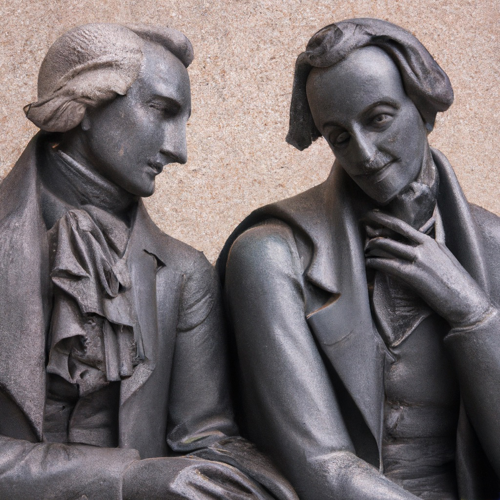 Johann Wolfgang von Goethe und Friedrich Schiller als Skulptur von Michelangelo mit DALL-E