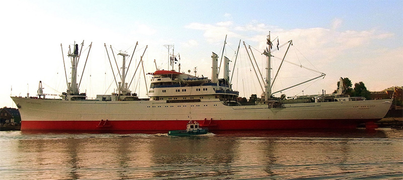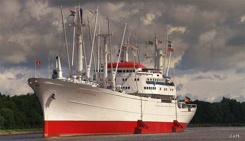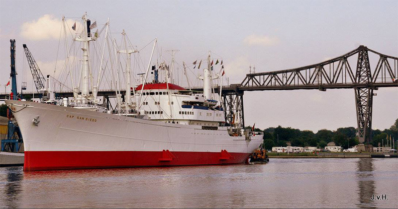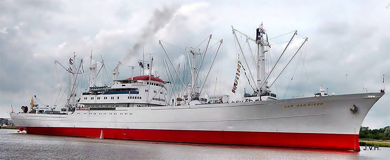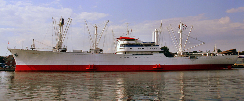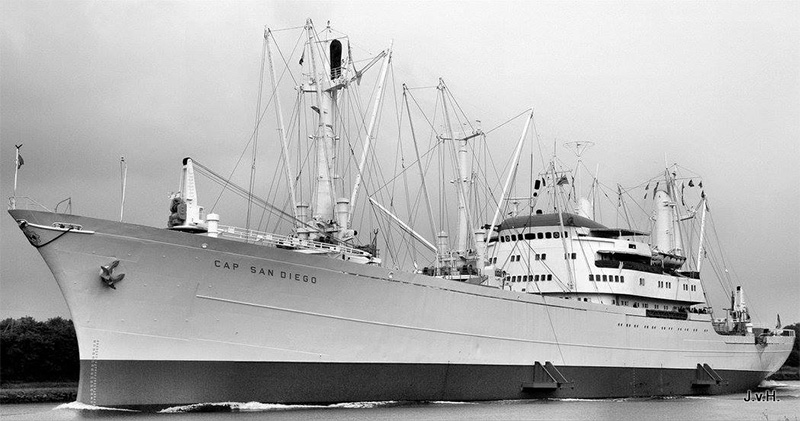 Die Cap San Diego ist ein Stückgutschiff, das als Museumsschiff an der Überseebrücke im Hamburger Hafen liegt. Das 1961 gebaute Schiff wurde im Liniendienst mit Südamerika eingesetzt. Wie die meisten Linienfrachter in diesem Fahrtgebiet, wurde es ab den 1980er-Jahren mehr und mehr von Containerschiffen verdrängt. http://www.capsandiego.de/