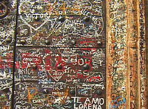 Sicherlich ist das ein bißchen übertrieben, aber du hättest ein Weltkulturerbe der Menschheit beschädigt. Wie schlimm so etwas aussehen kann, zeige ich dir am Beispiel der Tür der Case di Giulietta in Verona: