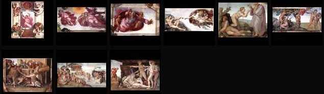 Zentrum Michelangelo 1508-12 Die Erschaffung von Licht und Dunkelheit Michelangelo 1508-12 Die Erschaffung von Sternen und Planeten Michelangelo 1508-12 Die Trennung von Land und Wasser Michelangelo 1508-12 Die Erschaffung des Adam Michelangelo 1508-12 Die Erschaffung der Eva Michelangelo 1508-12 Die Vertreibung aus dem Paradies Michelangelo 1508-12 Das Opfer des Noah Michelangelo 1508-12 Die Flut Michelangelo 1508-12 Die Trunkenheit Noahs