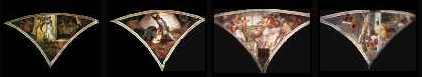Ecken Michelangelo 1508-12 Judith köpft Holofernas Michelangelo 1508-12 David und Goliath Michelangelo 1508-12 Die eherne Schlange Michelangelo 1508-12 Bestrafung des Haman