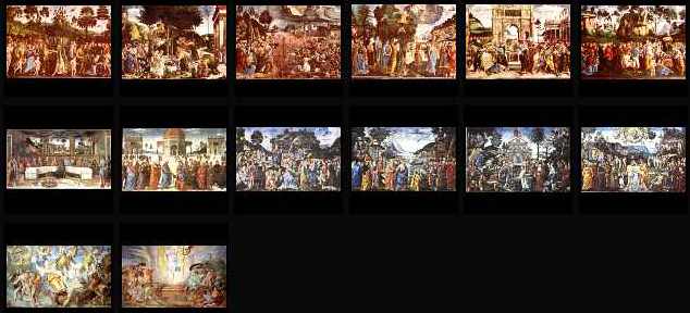 Wände Pietro Perugino Schlüsselübergabe Cosimo Rosselli Die Bergpredigt Sandro Botticelli 1481 Die Versuchung Christi Domenico Ghirlandaio 1481 Berufung der Apostel Pietro Perugino 1481-82 Taufe Christi Hendrik van den Broeck Auferstehung Matteo da Lecce Verteidigung von Moses Leib Pietro Perugino Moses Reise Auszug aus Ägypten Sandro Botticelli 1481-82 Leben des Mose Cosimo Rosselli Mose teilt das Rotes Meer Cosimo Rosselli Mose zerbricht Gesetztafeln Sandro Botticelli 1481-82 Bestrafung des Korah Luca Signorelli 1481-82 Testament und Tod des Mose Cosimo Rosselli Abendmahl Pietro Perugino Schlüsselübergabe Cosimo Rosselli Die Bergpredigt Sandro Botticelli 1481 Die Versuchung Christi Domenico Ghirlandaio 1481 Berufung der Apostel Pietro Perugino 1481-82 Taufe Christi Hendrik van den Broeck Auferstehung Matteo da Lecce Verteidigung von Moses Leib