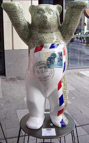 Interpretation: Der "Luftpost-Bär" erzählt Geschichten von Thailand in Form von Briefen. Die Briefe sind in thailändischen Buchstaben geschrieben. Mein Buddy Bär repräsentiert die Beziehung zwischen den Völkern dieser Welt und Thailand.
