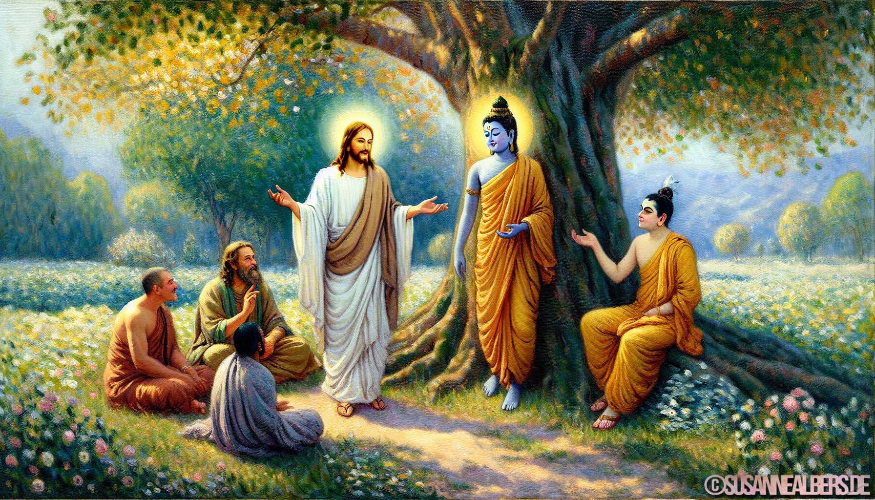 Galerie für KI-Bilder - Kunst und Inspiration >> albums >> -jesus-buddha-krishna-im-gespraech