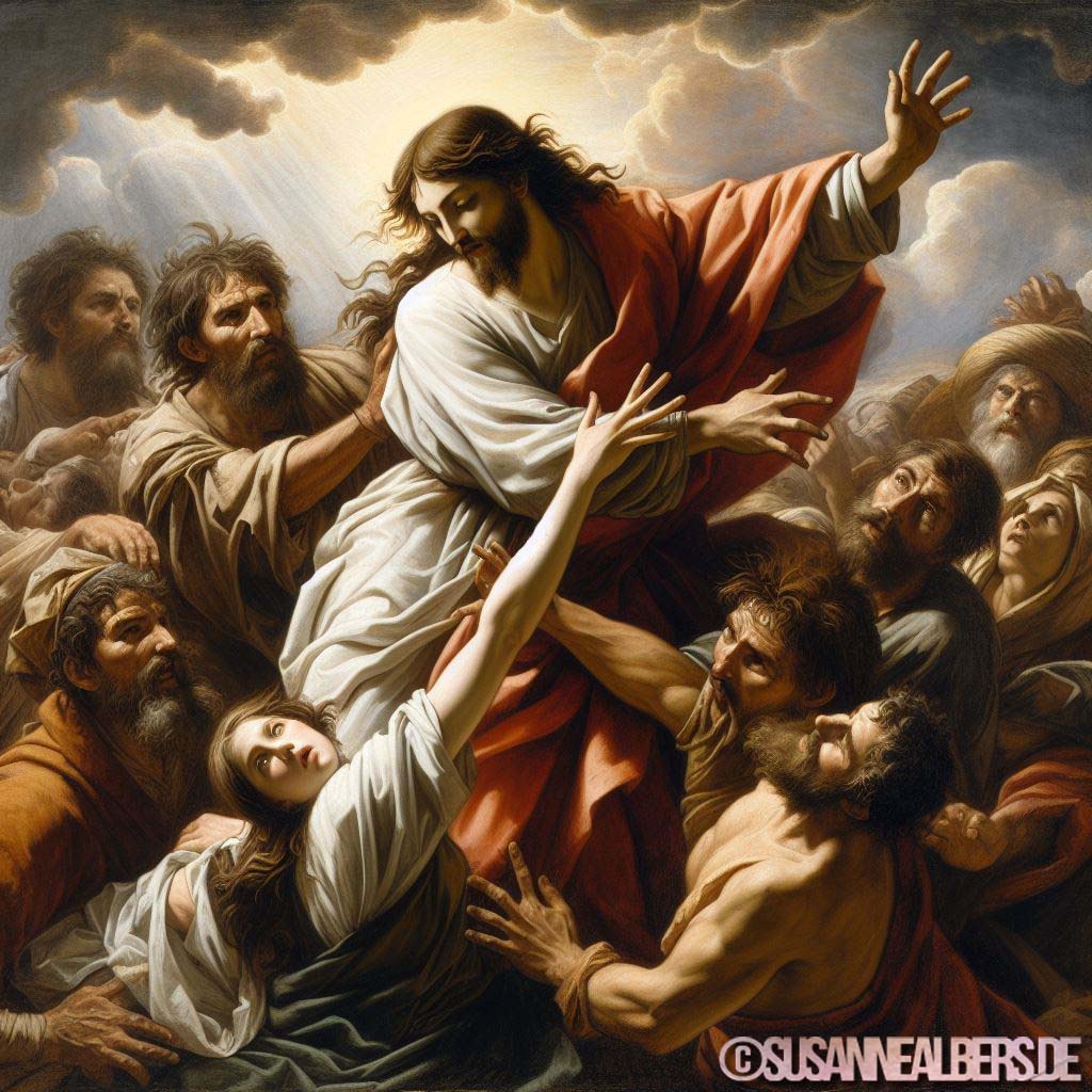Galerie für KI-Bilder - Kunst und Inspiration >> albums >> -jesus-nimmt-suender-in-schutz