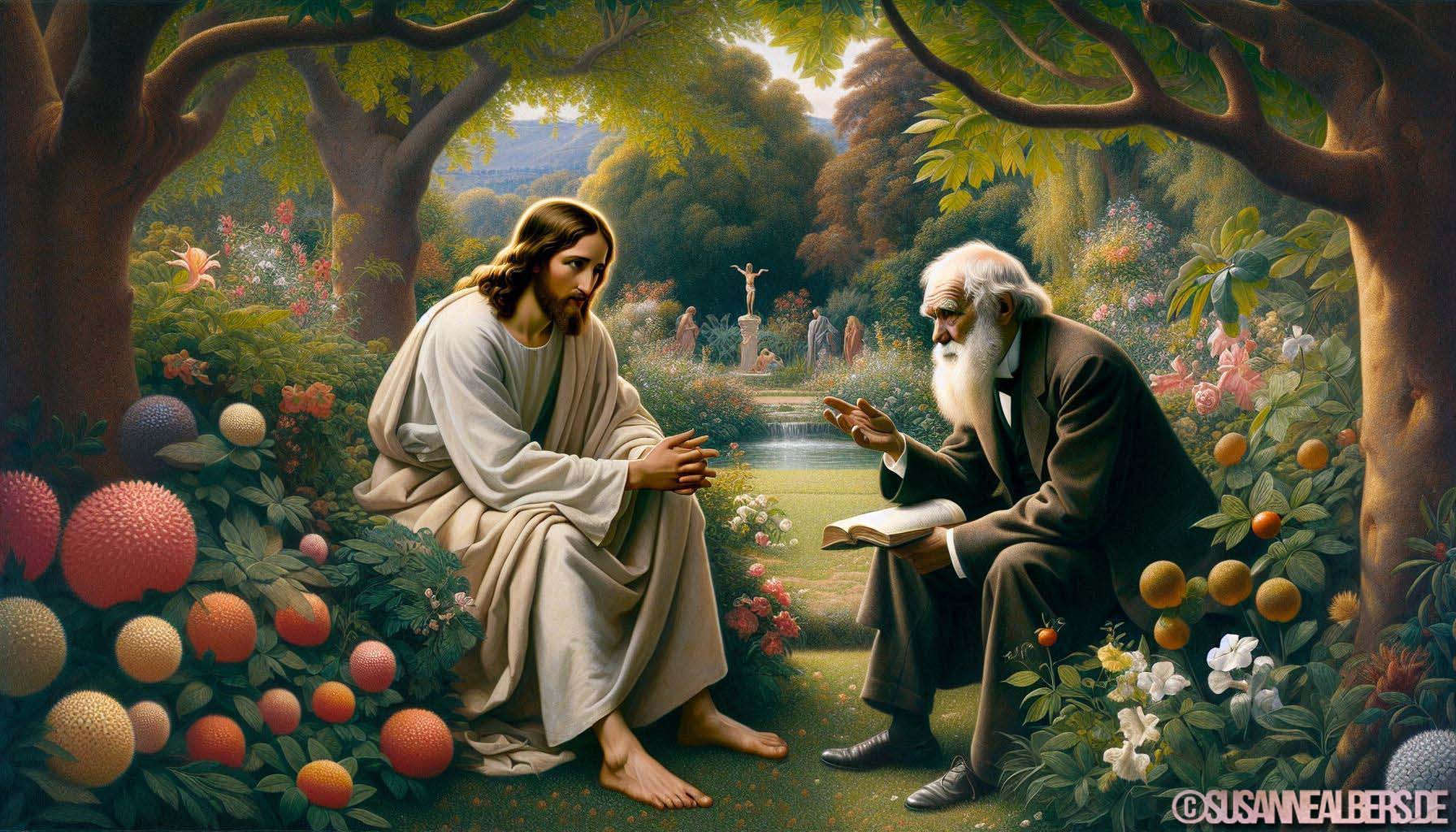 Galerie für KI-Bilder - Kunst und Inspiration >> albums >> -jesus-und-charles-darwin-im-gespraech