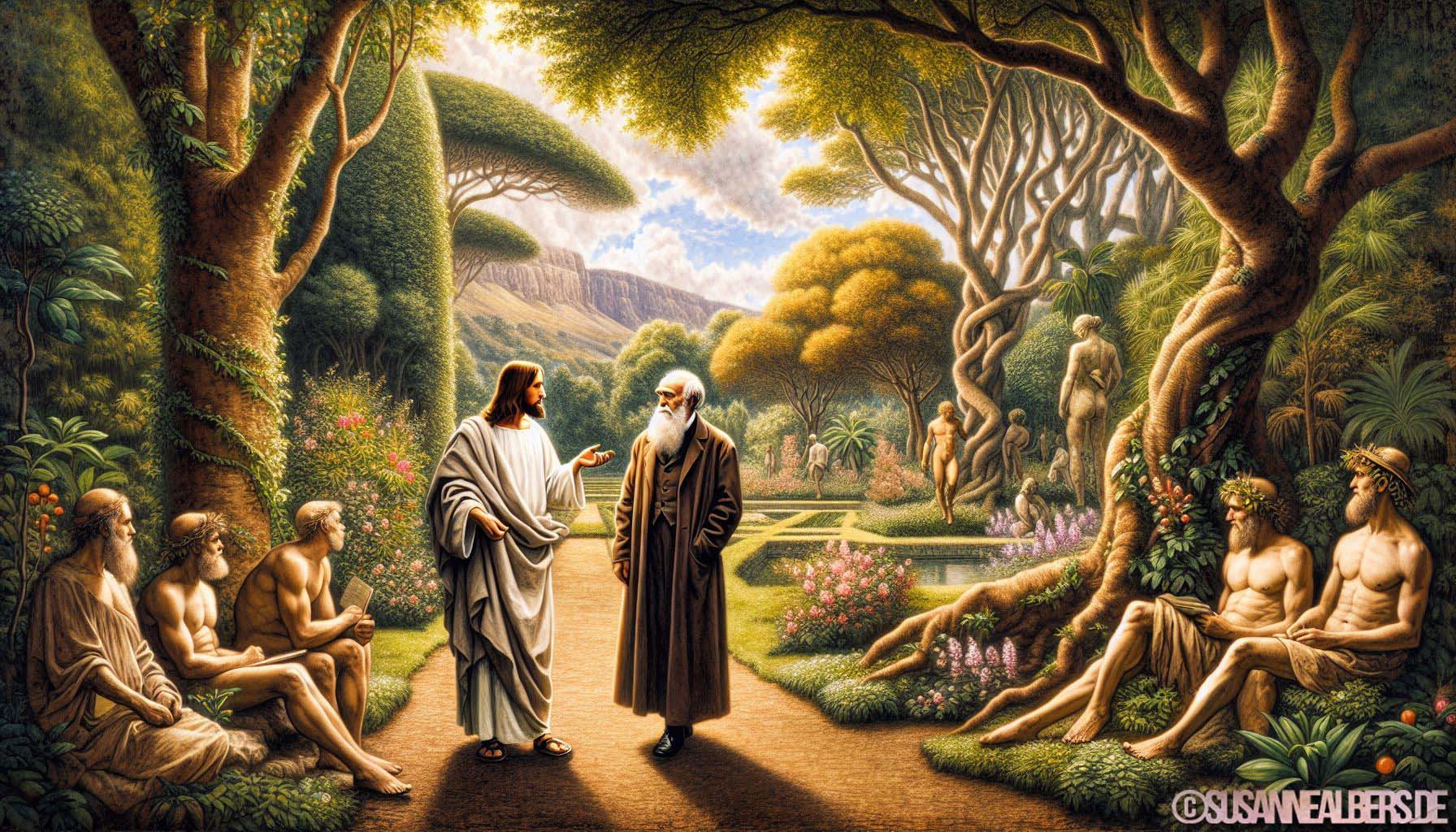 Galerie für KI-Bilder - Kunst und Inspiration >> albums >> -jesus-und-charles-darwin-im-gespraech