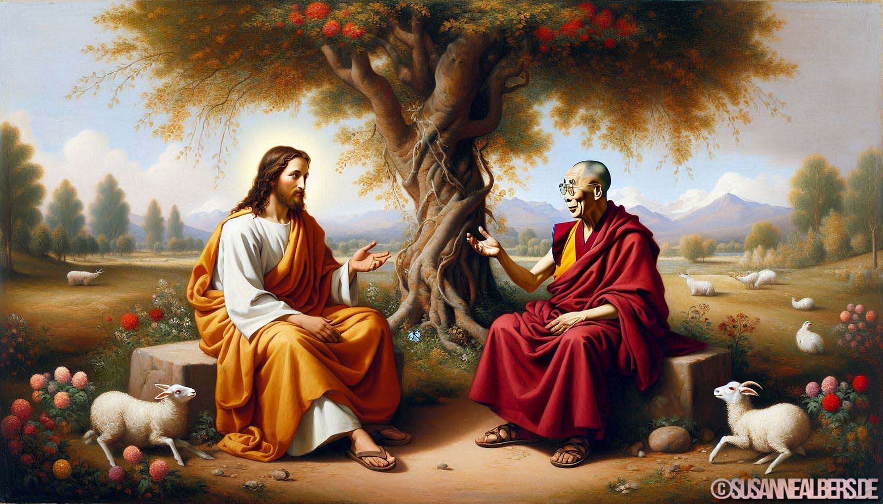 Galerie für KI-Bilder - Kunst und Inspiration >> albums >> -jesus-und-dalai-lama-im-gespraech