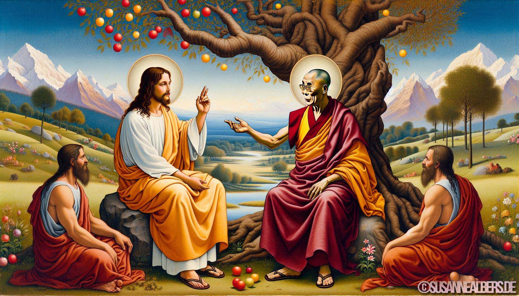 Galerie für KI-Bilder - Kunst und Inspiration >> albums >> -jesus-und-dalai-lama-im-gespraech