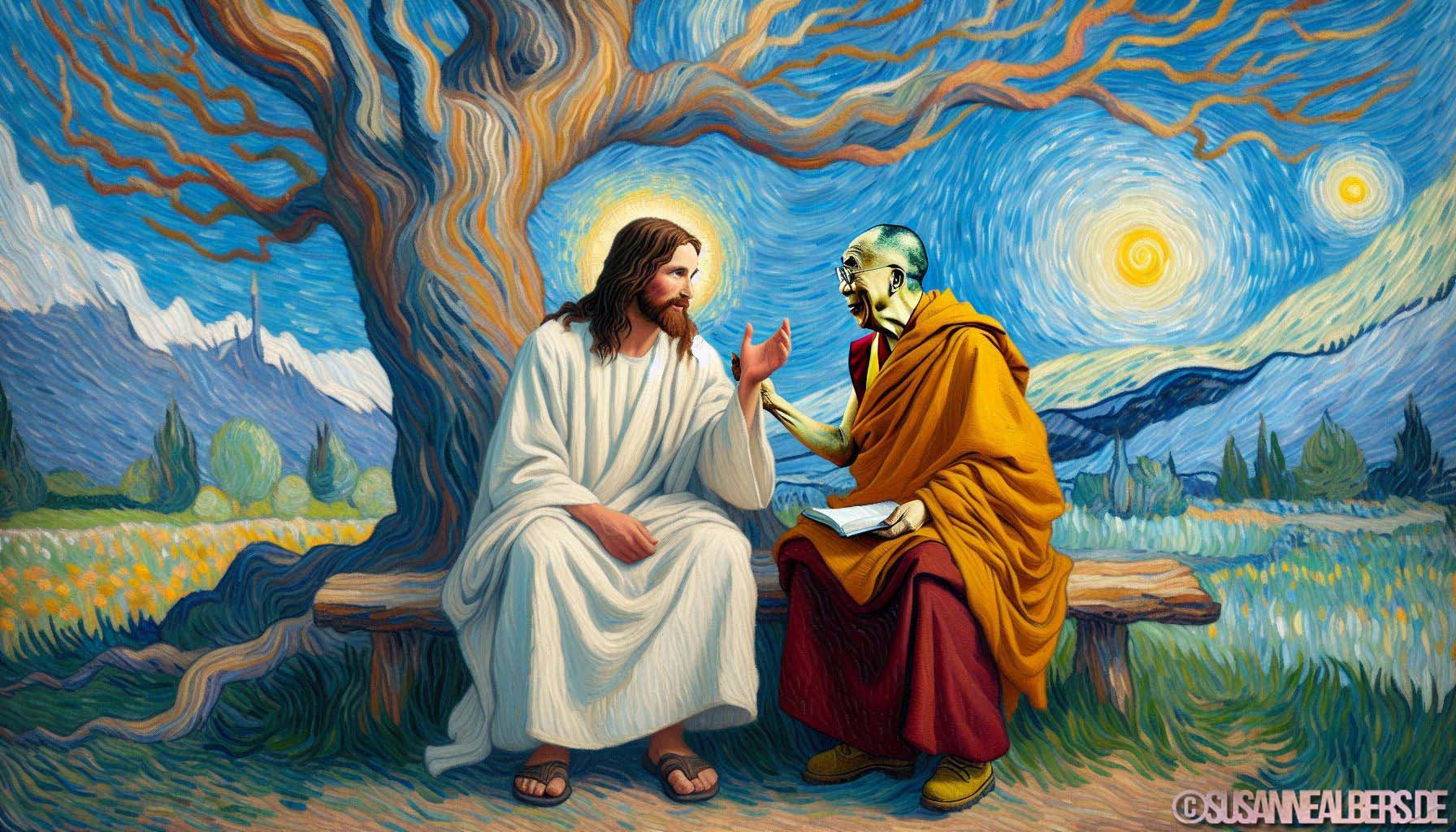 Galerie für KI-Bilder - Kunst und Inspiration >> albums >> -jesus-und-dalai-lama-im-gespraech