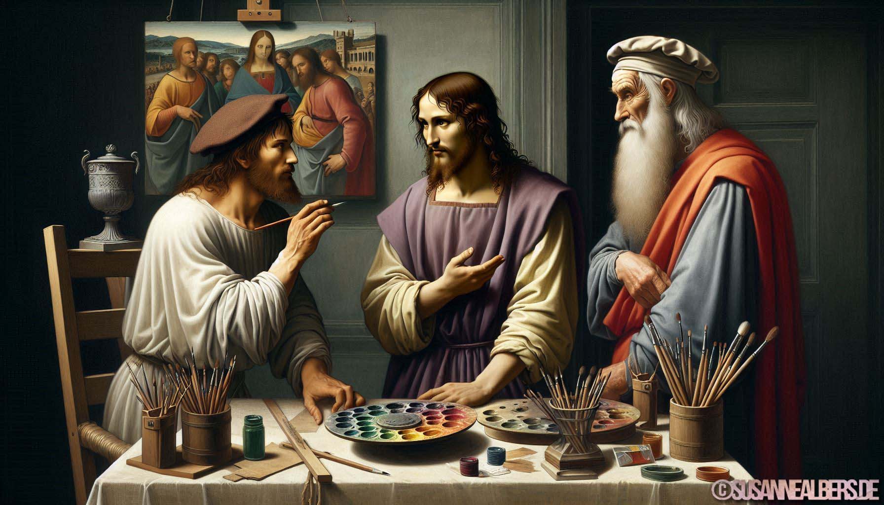 Galerie für KI-Bilder - Kunst und Inspiration >> albums >> -jesus-und-leonardo-im-gespraech-ueber-anatomie
