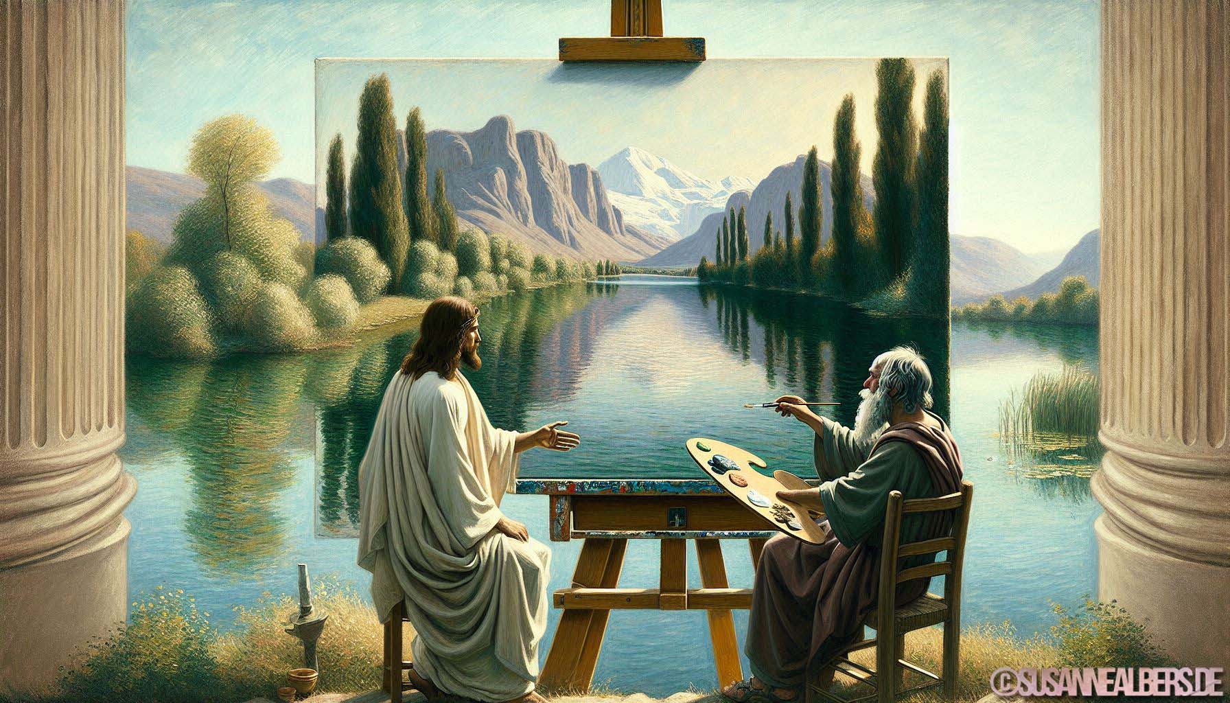 Galerie für KI-Bilder - Kunst und Inspiration >> albums >> -jesus-und-sokrates-im-gespraech
