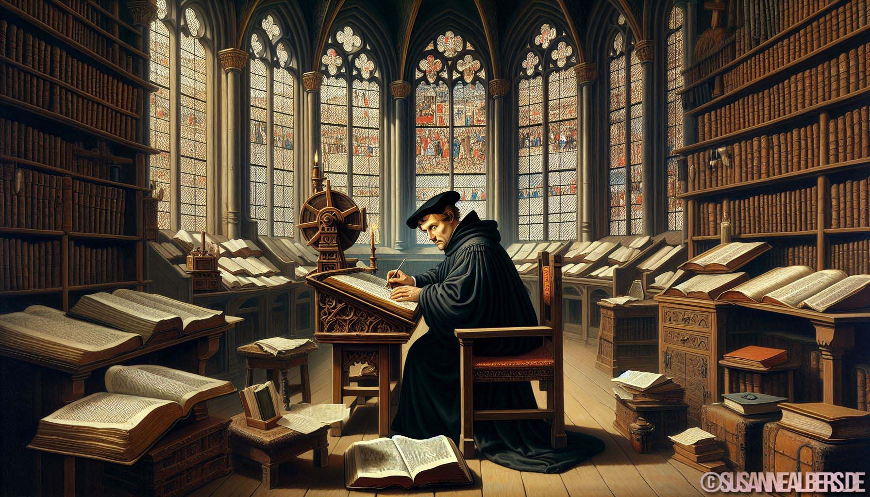 Galerie für KI-Bilder - Kunst und Inspiration >> albums >> -martin-luther-uebersetzt-die-bibel