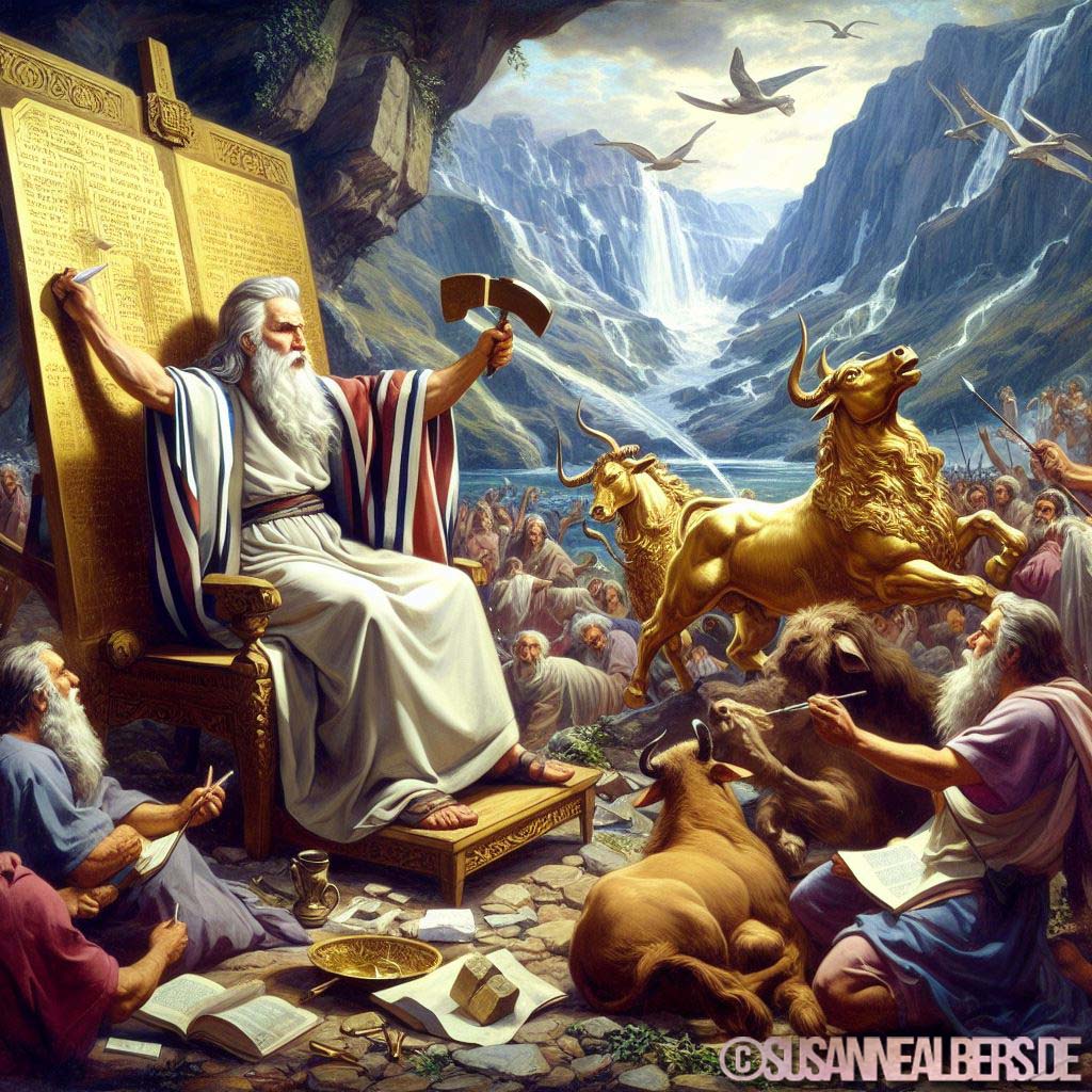 Galerie für KI-Bilder - Kunst und Inspiration >> albums >> -mose-zerbricht-gesetzestafeln-goldes-kalb