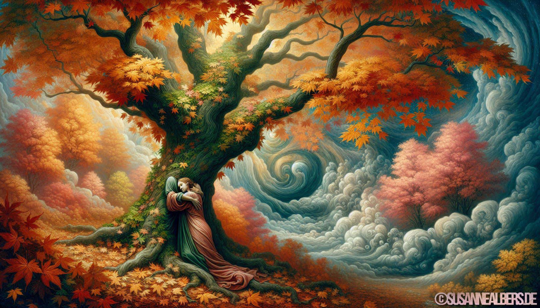 Galerie für KI-Bilder - Kunst und Inspiration >> albums >> -mystisches-gefuehl-ahornbaum-umarmen