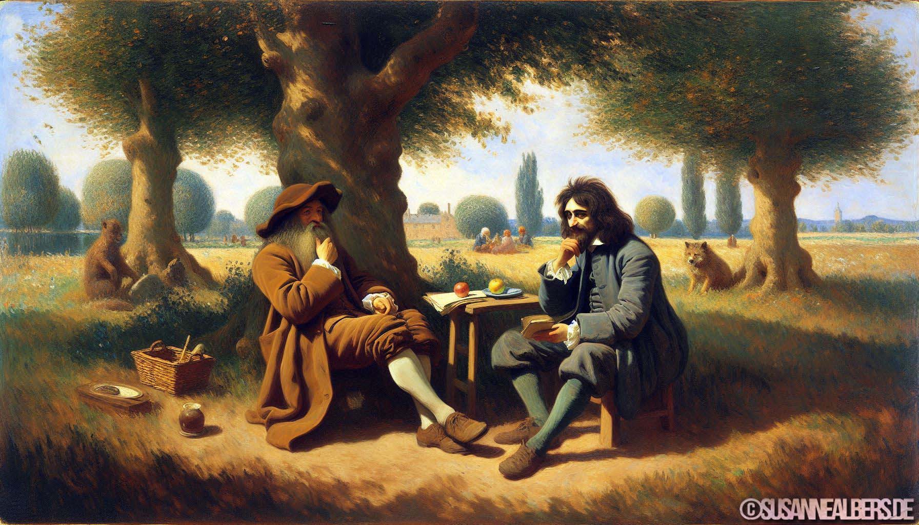 Galerie für KI-Bilder - Kunst und Inspiration >> albums >> -rene-descartes-und-baruch-spinoza-im-gespraech