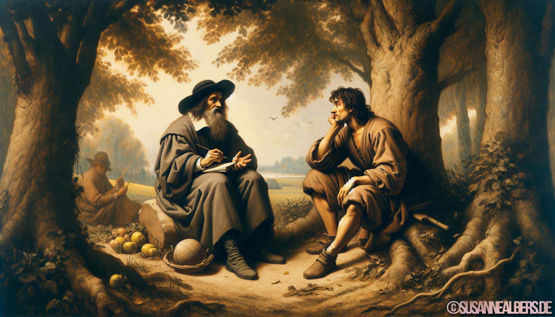 Galerie für KI-Bilder - Kunst und Inspiration >> albums >> -rene-descartes-und-baruch-spinoza-im-gespraech