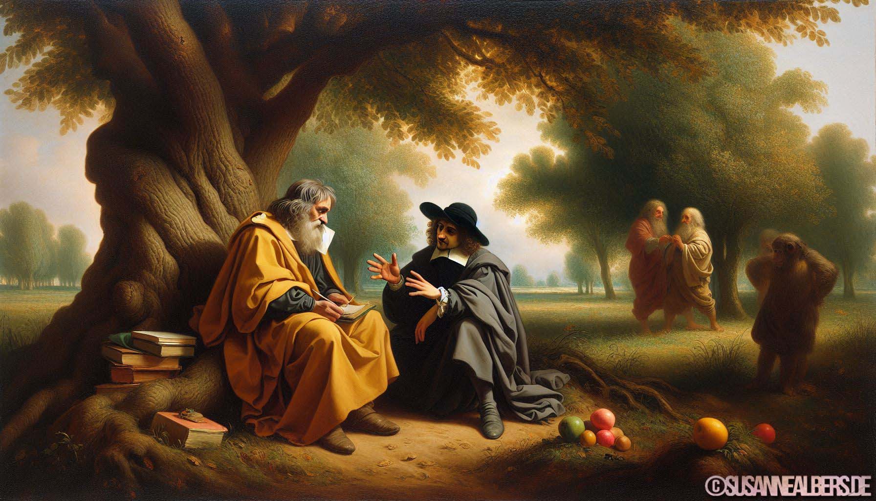 Galerie für KI-Bilder - Kunst und Inspiration >> albums >> -rene-descartes-und-baruch-spinoza-im-gespraech