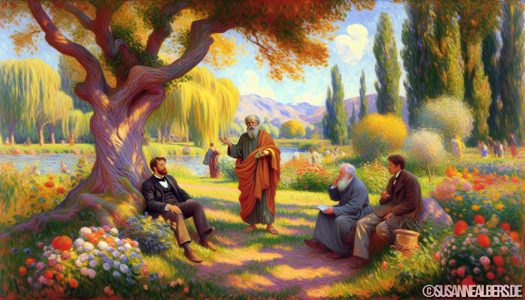 Galerie für KI-Bilder - Kunst und Inspiration >> albums >> -sokrates-philosophiert-mit-anderen