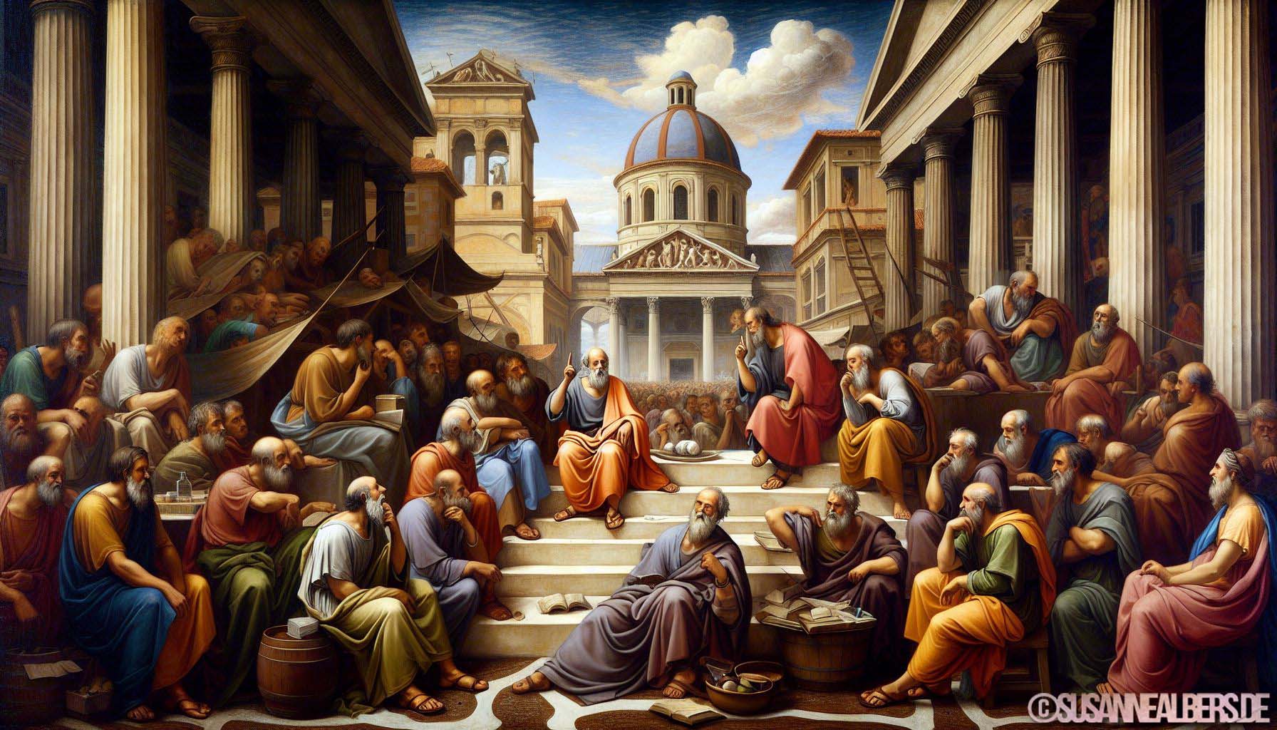 Galerie für KI-Bilder - Kunst und Inspiration >> albums >> -sokrates-philosophiert-mit-anderen