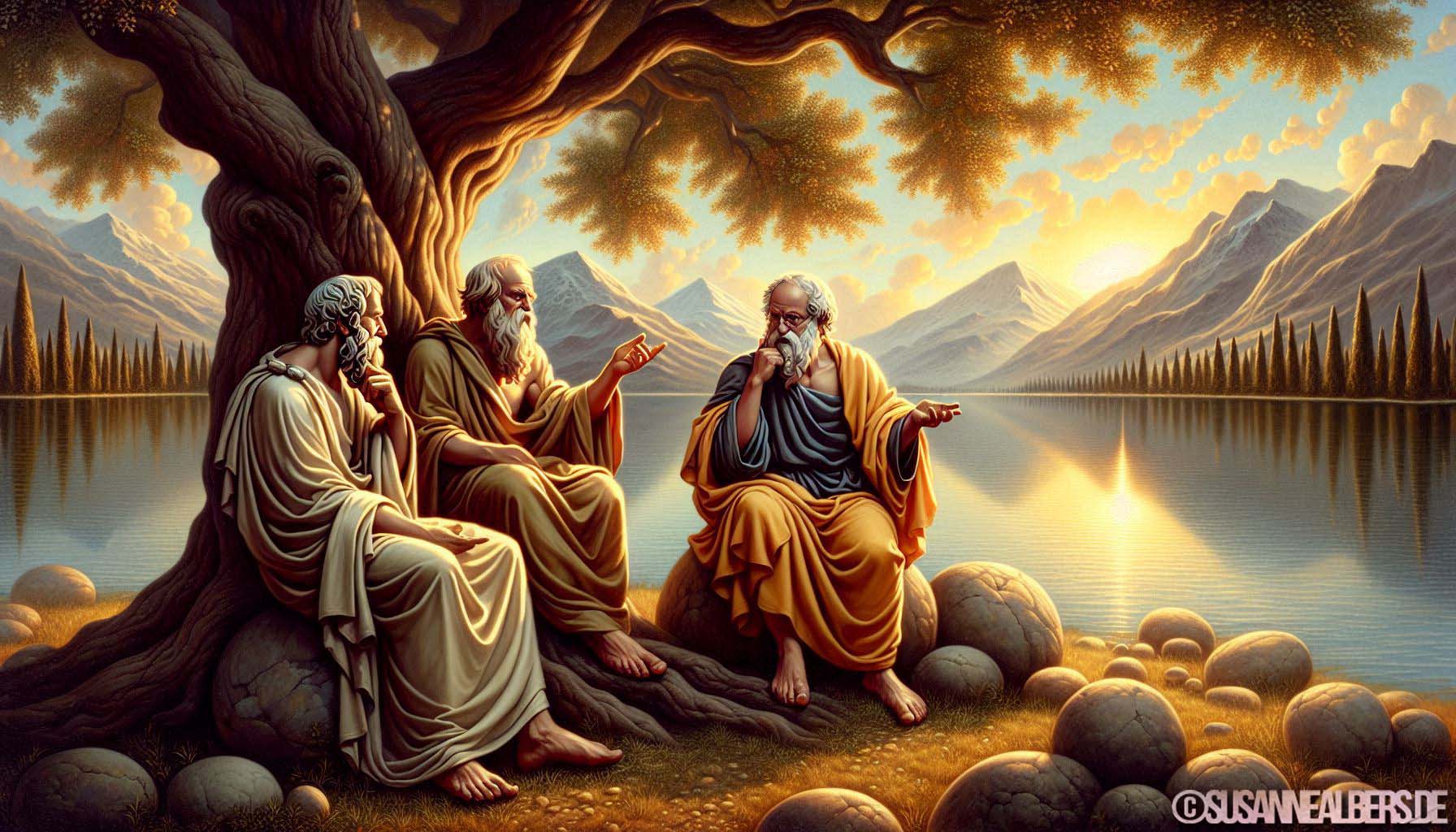 Galerie für KI-Bilder - Kunst und Inspiration >> albums >> -sokrates-platon-aristoteles-ueber-leben-und-tod