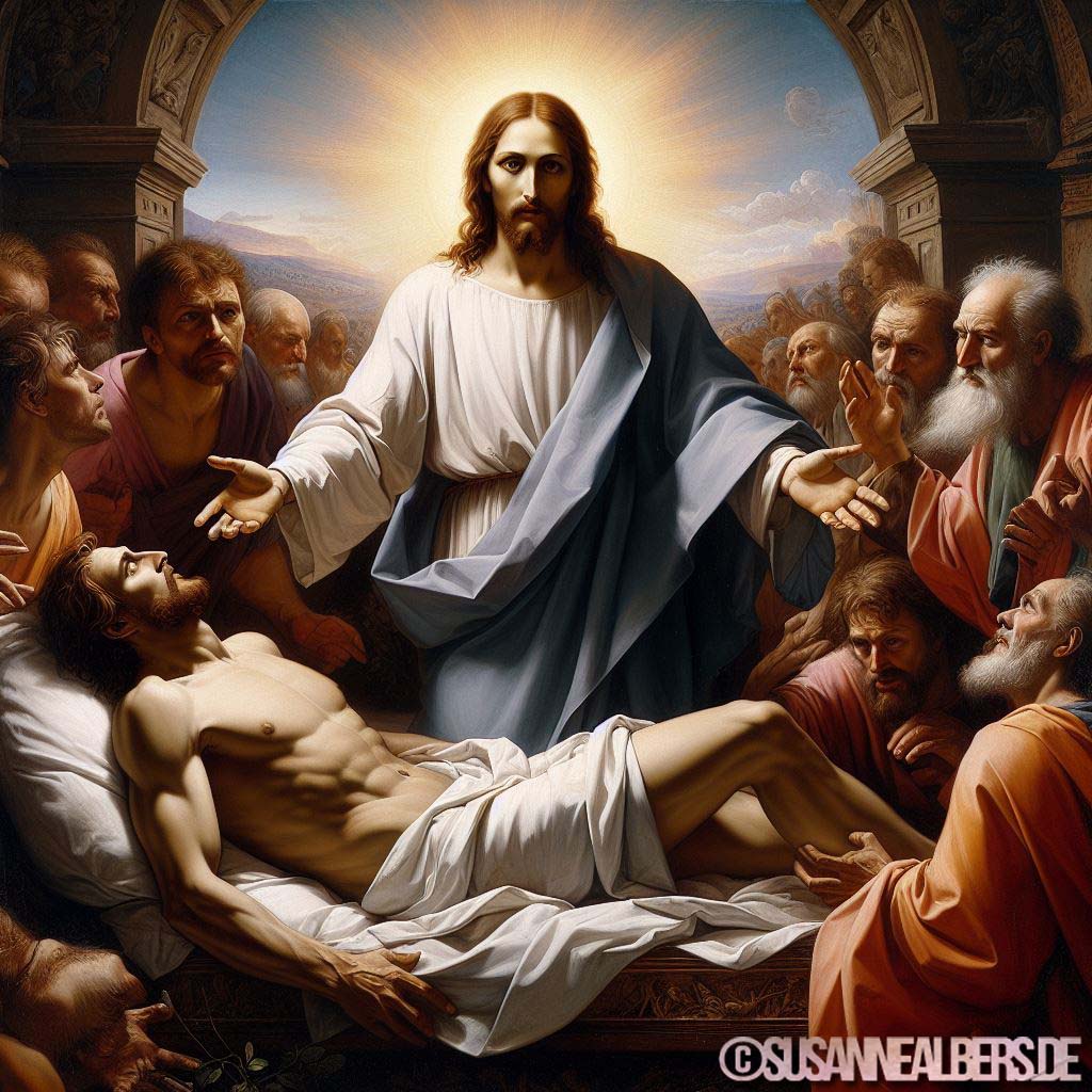 Galerie für KI-Bilder - Kunst und Inspiration >> albums >> -unglaeubiger-thomas-prueft-auferstandenen-jesus