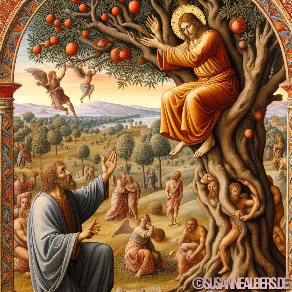 Galerie für KI-Bilder - Kunst und Inspiration >> albums >> -zachaeus-auf-dem-baum