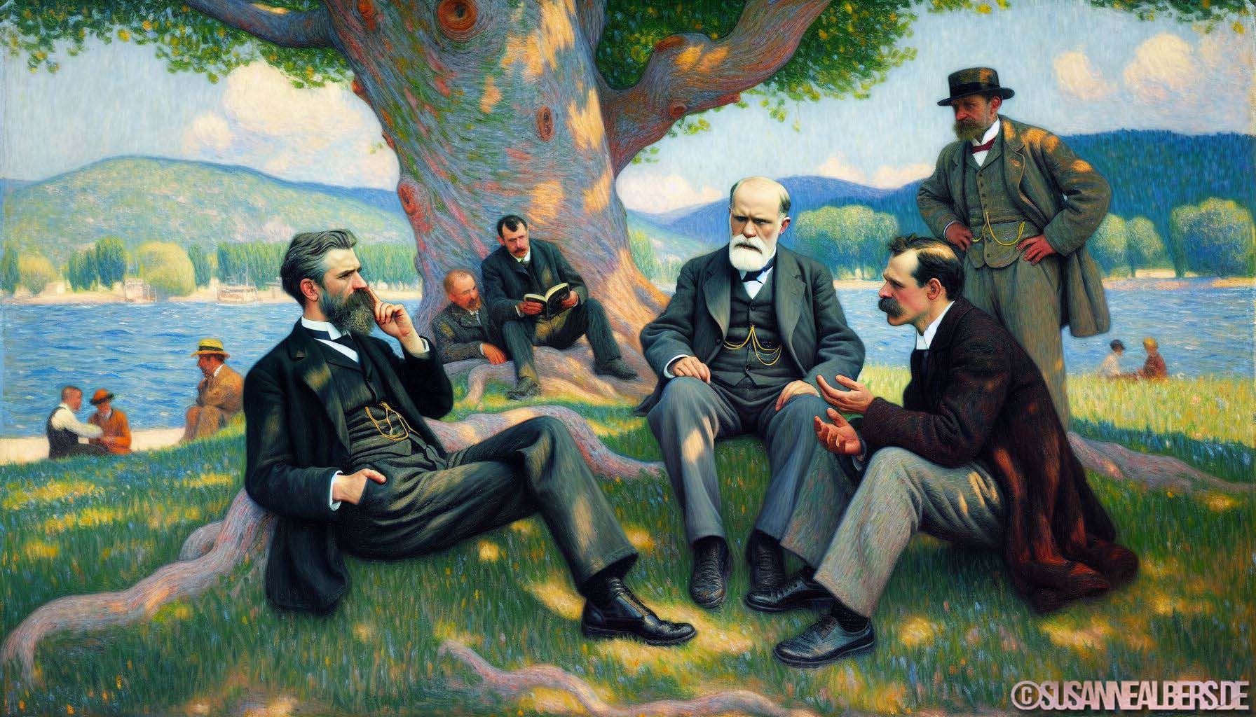 Galerie für KI-Bilder - Kunst und Inspiration >> albums >> -freud-hesse-nietzsche-gespraech