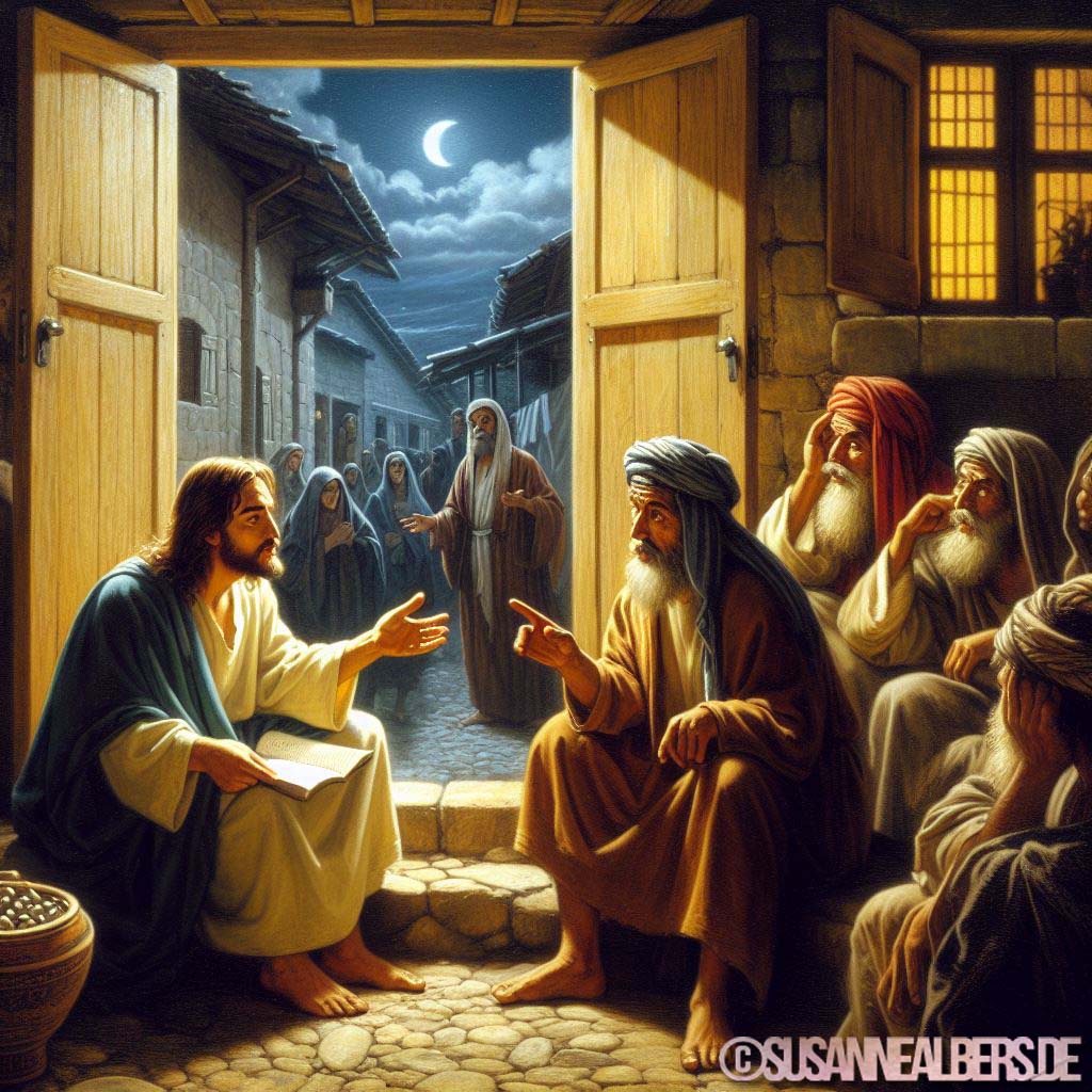 Galerie für KI-Bilder - Kunst und Inspiration >> albums >> -jesus-besucht-nikodemus-sie-diskutieren