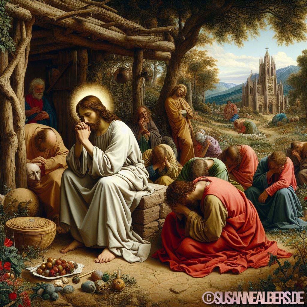 Galerie für KI-Bilder - Kunst und Inspiration >> albums >> -jesus-betet-juenger-schlafen
