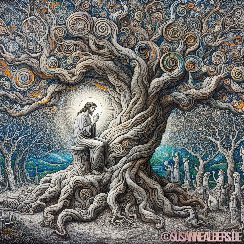Galerie für KI-Bilder - Kunst und Inspiration >> albums >> -jesus-betet-unter-baum