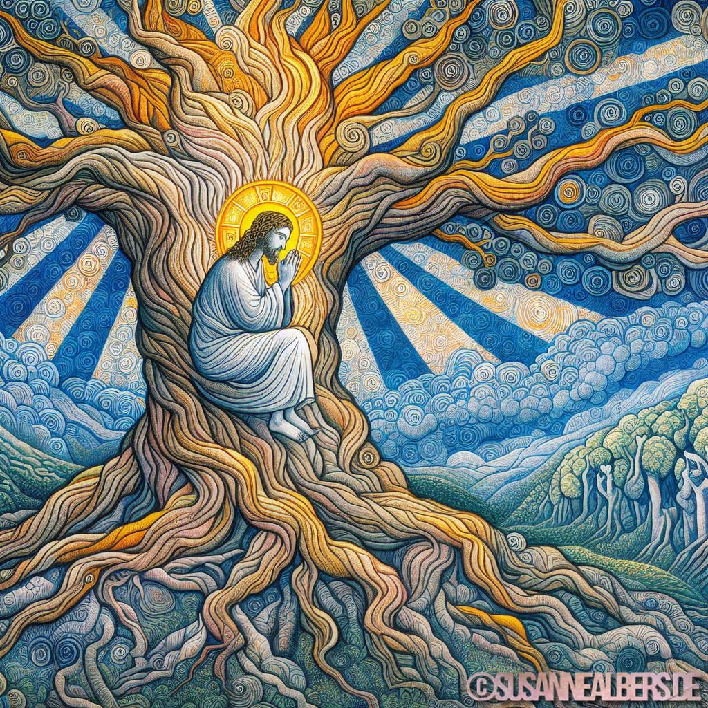 Galerie für KI-Bilder - Kunst und Inspiration >> albums >> -jesus-betet-unter-baum