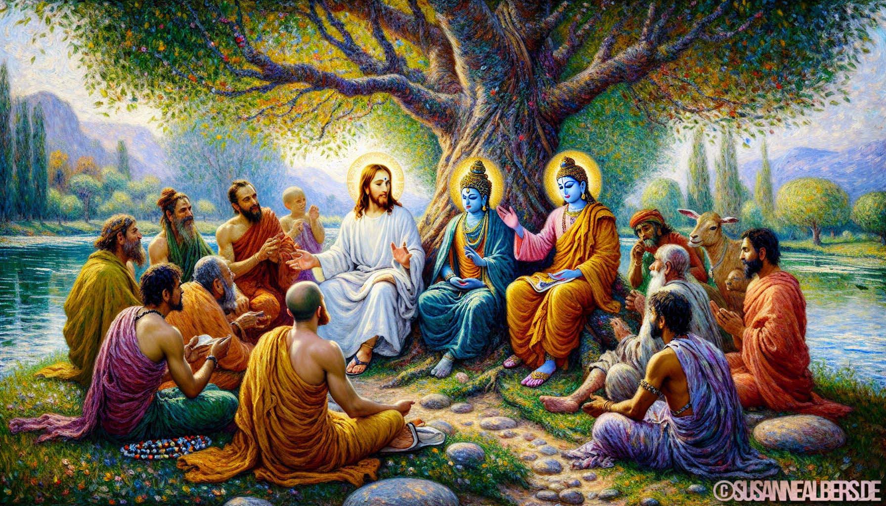 Galerie für KI-Bilder - Kunst und Inspiration >> albums >> -jesus-buddha-krishna-im-gespraech