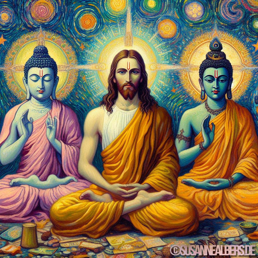 Galerie für KI-Bilder - Kunst und Inspiration >> albums >> -jesus-buddha-krishna-meditieren