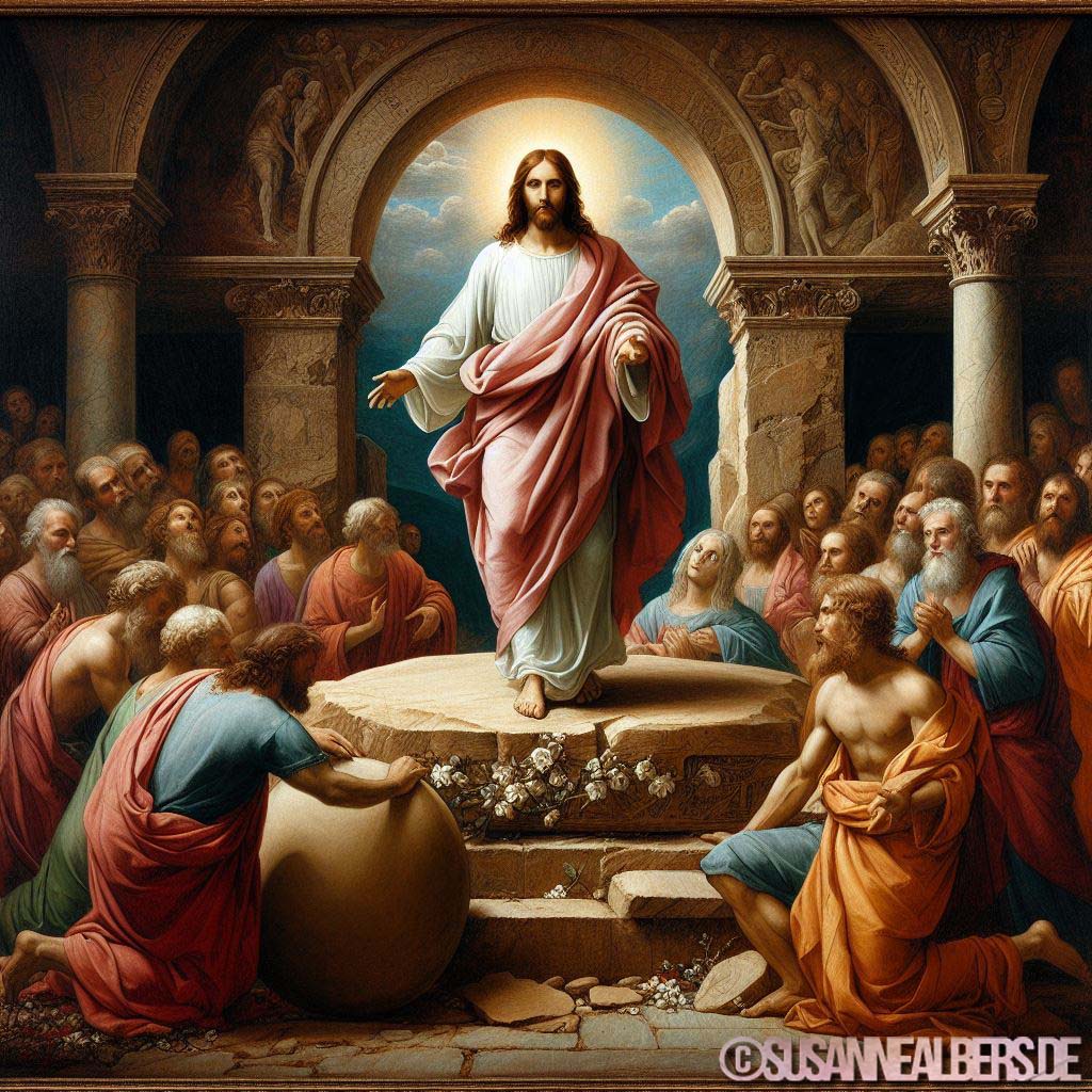 Galerie für KI-Bilder - Kunst und Inspiration >> albums >> -jesus-lebt-rollt-stein-weg