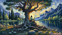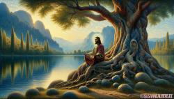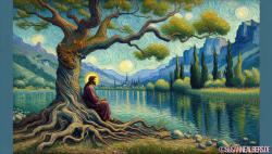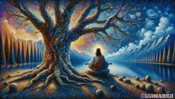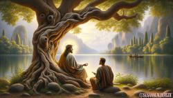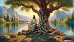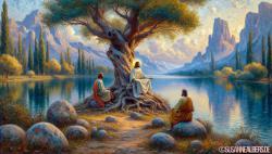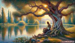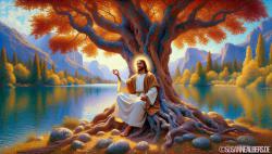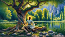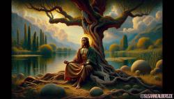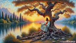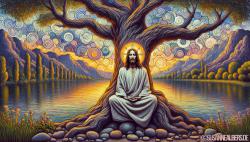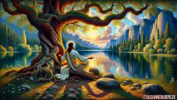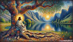 Galerie für KI-Bilder - Kunst und Inspiration >> albums >> -jesus-meditiert-an-baum-und-see