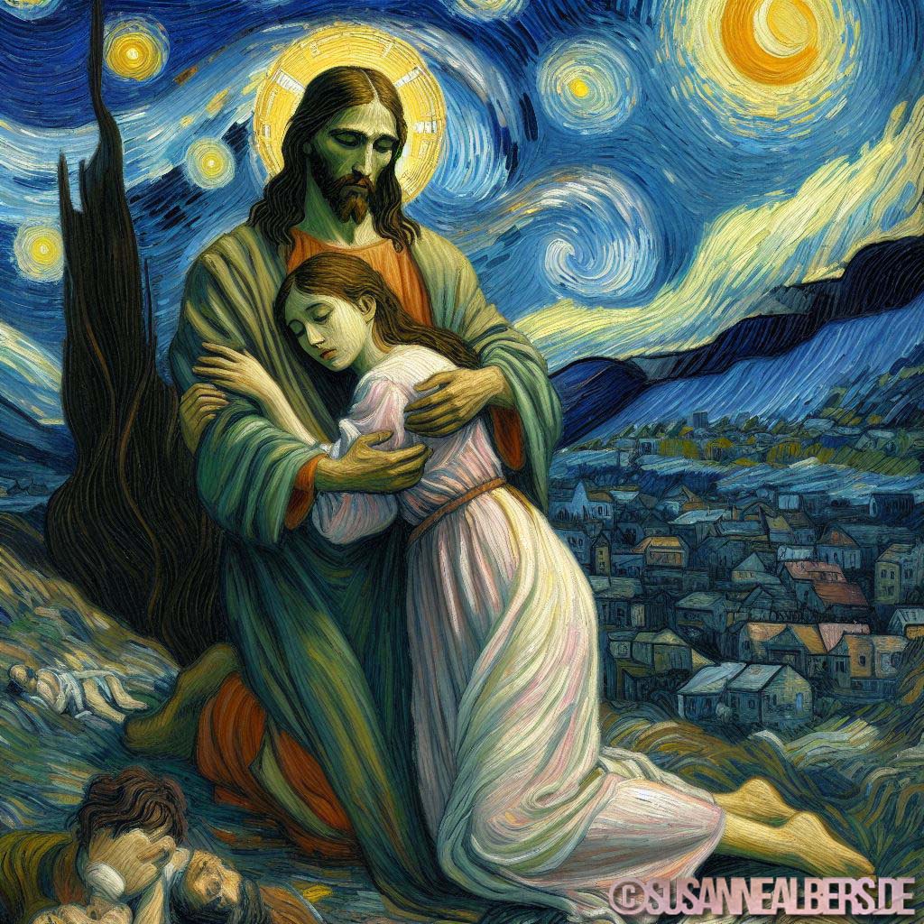Galerie für KI-Bilder - Kunst und Inspiration >> albums >> -jesus-nimmt-suender-in-schutz