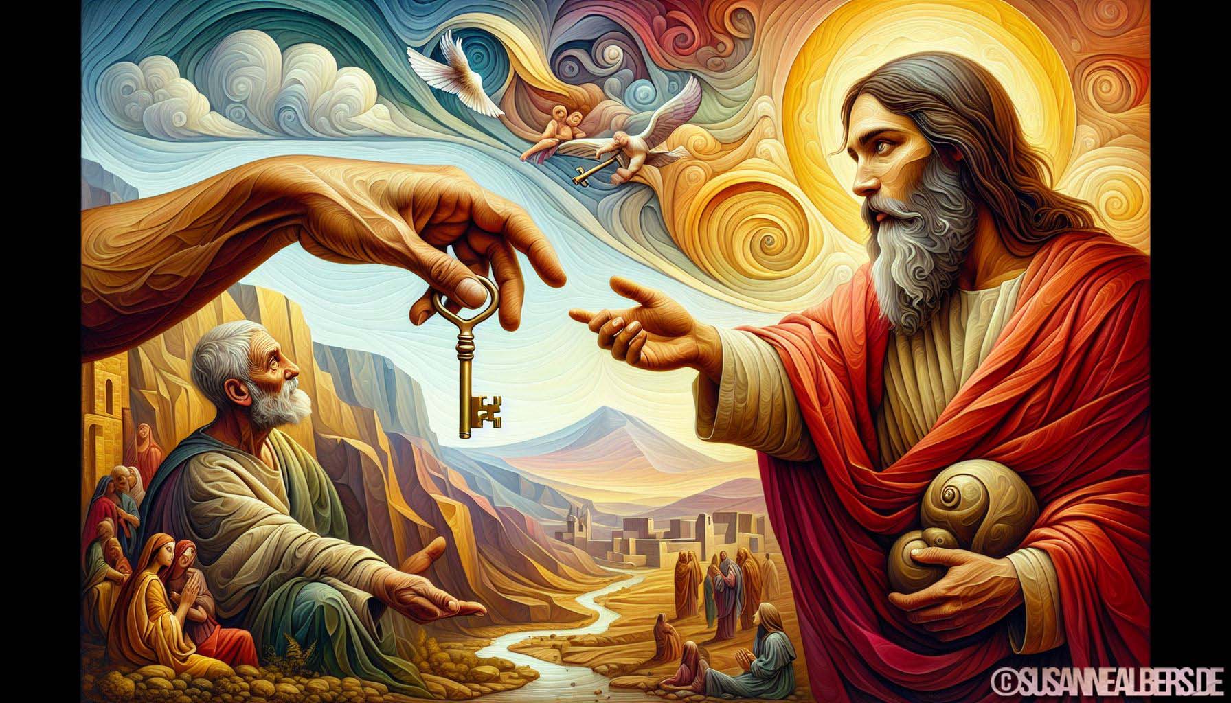 Galerie für KI-Bilder - Kunst und Inspiration >> albums >> -jesus-uebergibt-petrus-die-schluessel