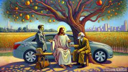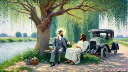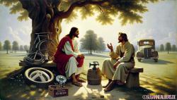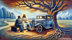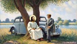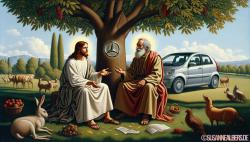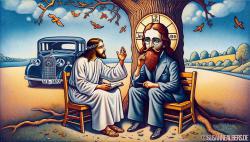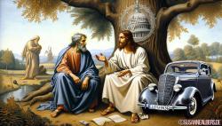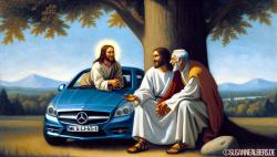 Galerie für KI-Bilder - Kunst und Inspiration >> albums >> -jesus-und-carl-benz-im-gespraech
