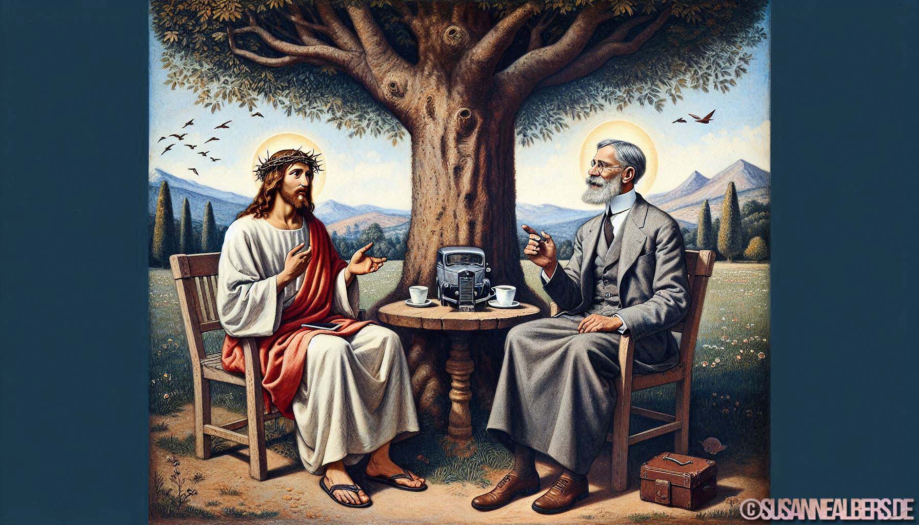Galerie für KI-Bilder - Kunst und Inspiration >> albums >> -jesus-und-carl-benz-im-gespraech
