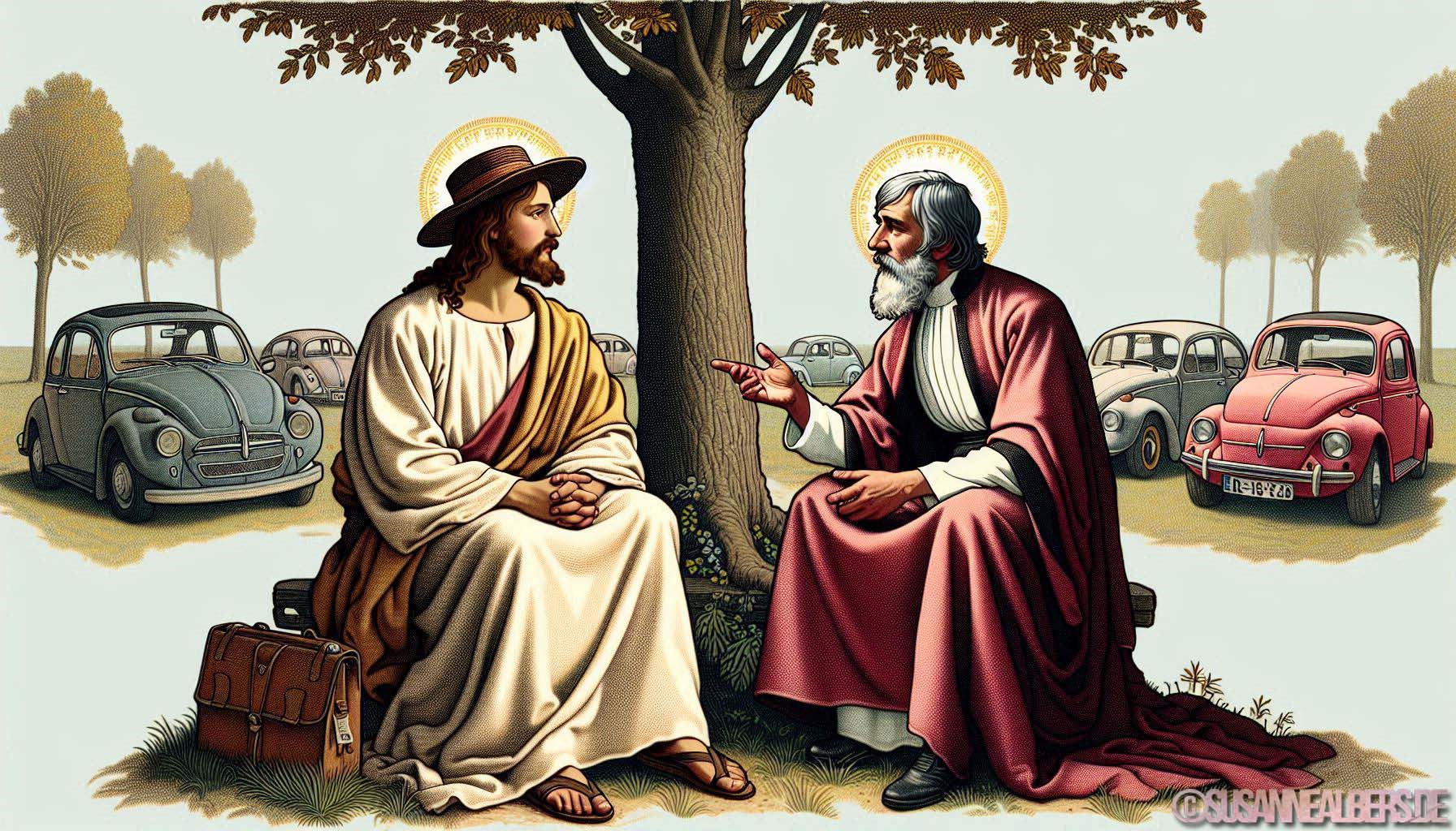 Galerie für KI-Bilder - Kunst und Inspiration >> albums >> -jesus-und-carl-benz-im-gespraech