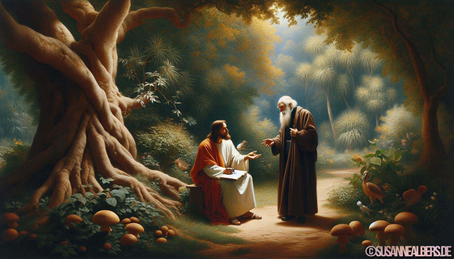 Galerie für KI-Bilder - Kunst und Inspiration >> albums >> -jesus-und-charles-darwin-im-gespraech