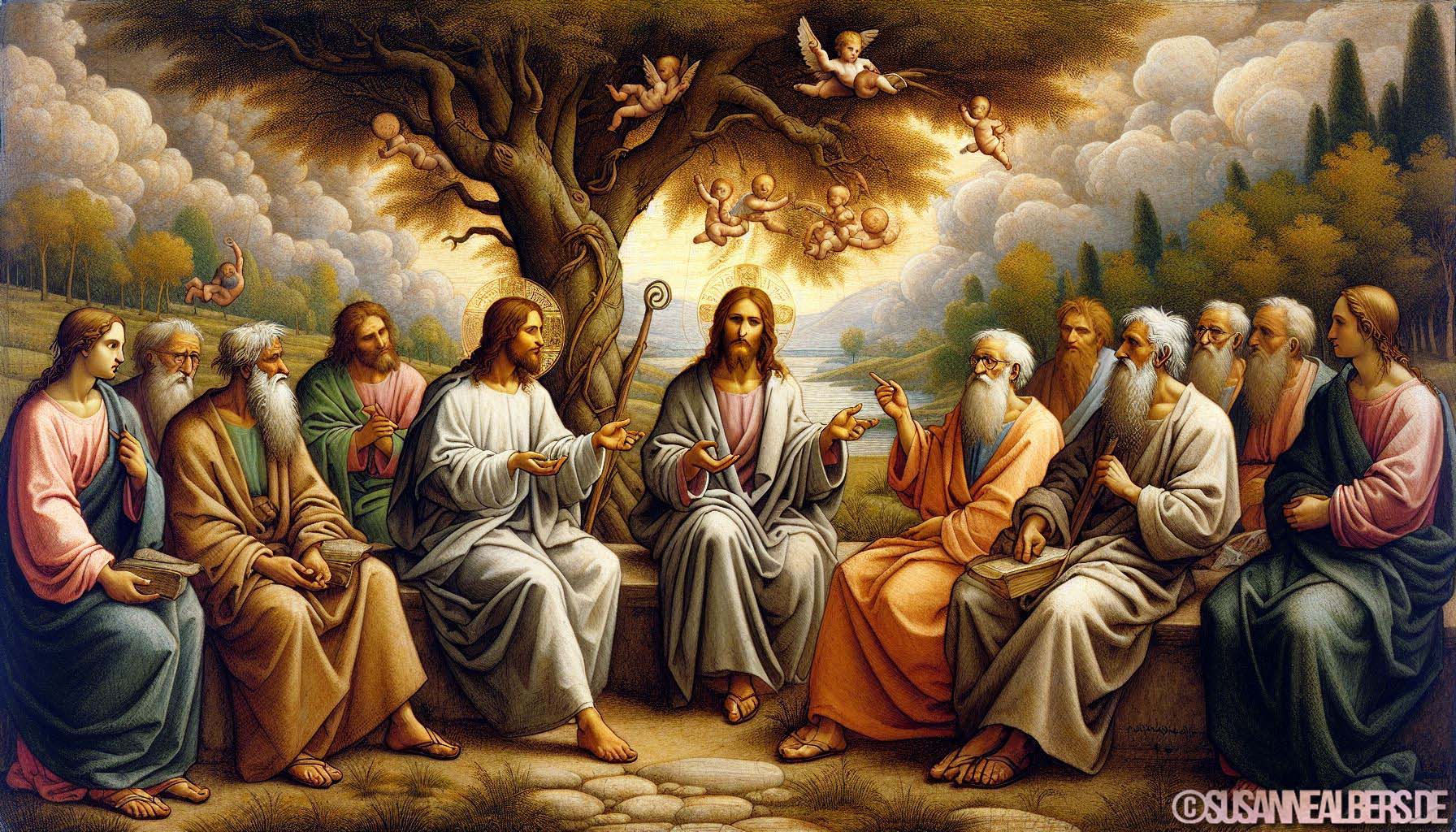 Galerie für KI-Bilder - Kunst und Inspiration >> albums >> -jesus-und-hippokrates-im-gespraech