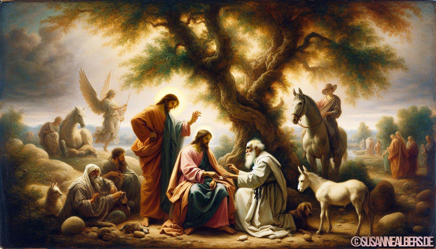 Galerie für KI-Bilder - Kunst und Inspiration >> albums >> -jesus-und-hippokrates-im-gespraech